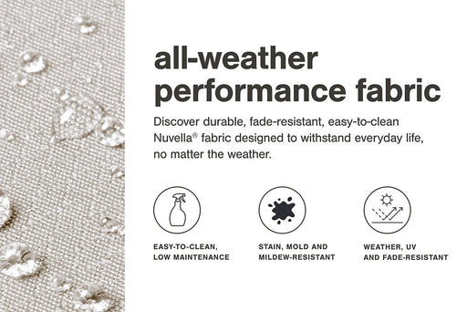 • Zippered cushions covered in Nuvella¬Æ (solution-dyed polyester) high-performance fabric